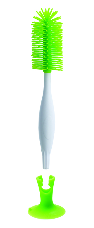 Material : Handle - PP, Bristle - TPE Features: • The soft brush is designed for convenient and gentle cleaning • The extra soft bristles makes it easy to clean and wipe bottle without any scratch • The soft bristles flexibly adapt to different forms of bottles The teat brush with structured surface, conveniently locates at the end of handle, cleans the teat on the inside thoroughly. • This innovative bottle brush is easy to use and cleans baby bottles and teats properly • With suction base, the brush stands upright away from germs and stay clean and dry • BPA, PVC and Phthalate free